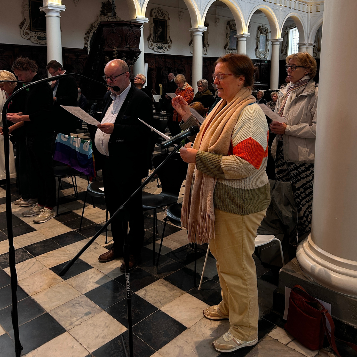 Zaterdagochtend 4 oktober werd gestart met een kort gebedsmoment, waarna om 10u Monseigneur Bonny begon met het voorlezen van de namen en leeftijden van de kinderen, Israëlische en Palestijnse, die sinds 7 oktober 2023 het leven lieten. “Het gaat om meer dan 12.000 kinderen onder de 12 jaar,” aldus bisschop Johan Bonny. “Dat geeft een idee van de eindeloze miserie, zeker als je rekent dat achter elk kind een gezin staat, met ouders en grootouders die een kind hebben verloren.” Het voorlezen van de namen en leeftijden van de kinderen duurde tot 17u.